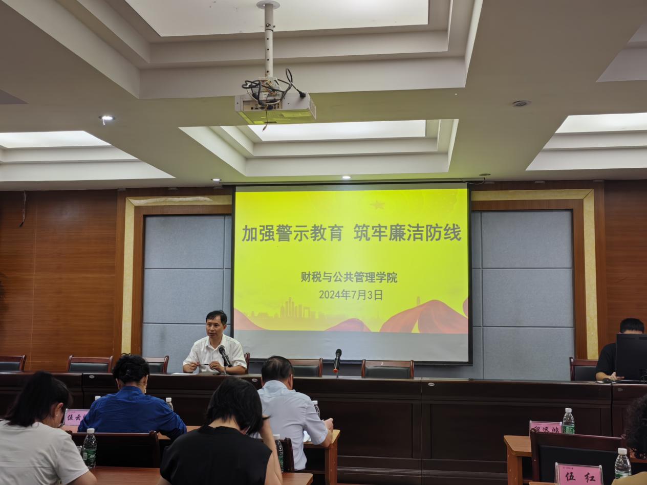 为扎实推进党纪学习教育走深走实,进一步加强党风廉政建设,塑造风清气正、廉洁自律的教师队伍。7月3日,财税与亚洲性爱视频 在财税大楼105会议室开展警示教育,学院领导班子、全体教职工参加警示教育,会议由学院党委书记段远鸿主持。