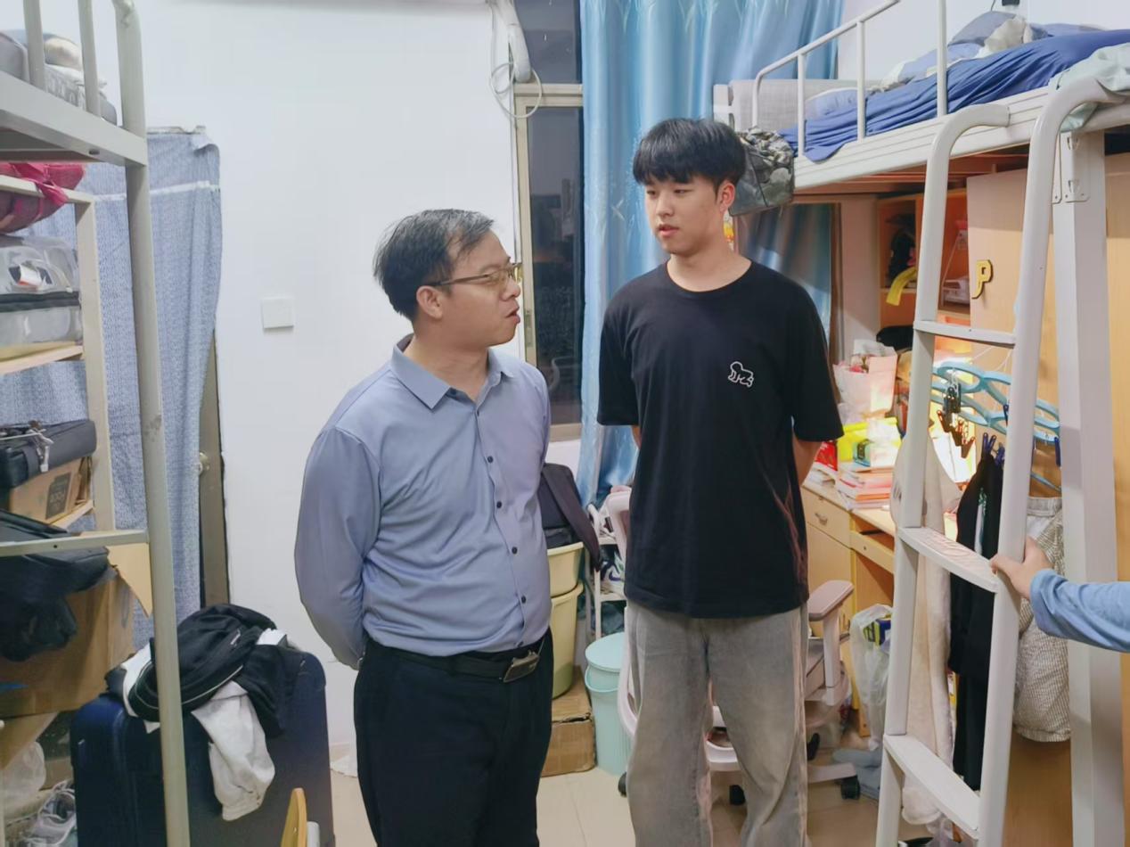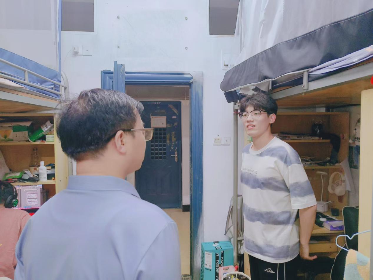 为切实加强学生宿舍管理,掌握学生思想动态,进一步做好学生关怀服务工作,5月12日晚,学院党委书记熊小刚深入学生宿舍,开展走访慰问活动,为同学们送去温暖关怀与贴心指导。
