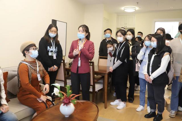 此次现场教学活动运用“现场观摩+研讨交流”形式。师生们首先在泰康之家·赣园相关工作人员的陪同下,参观了社区体验馆,长者社区智慧平台、活力中心(包括图书馆、健身房、游泳池、信仰空间等各类文化和运动场馆)、康复医院等养老服务设施,加深了对我国养老服务产业、适老化、智能化产品改造的感性认识。