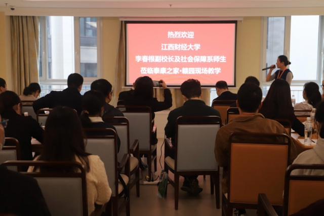 为使同学们加强对养老服务发展新动态的认识,加深对社会保障专业的感性认识,10月28日,亚洲性爱视频 《社会保障学》授课教师团队走进泰康之家•赣园养老社区开展现场教学活动。此次活动由副校长、《社会保障学》授课教师团队成员及课程思政带头人李春根教授组织,江西省养老服务与社会福利协会马林印会长、江西中医药大学医药卫生管理与政策发展研究中心执行主任郑先平副教授应邀出席,社会保障专业(方向)本硕博学生代表参加。
